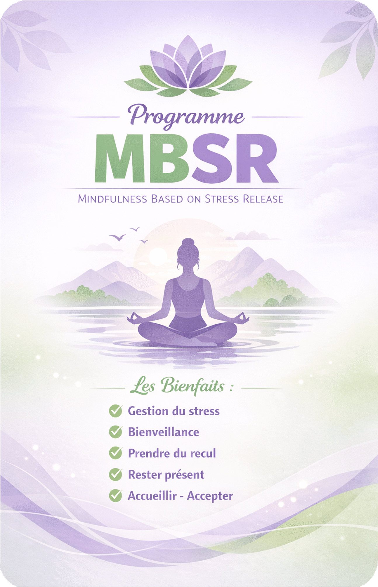 Objectifs : La méditation de pleine conscience aide à nous recentrer. Elle nous permet de réinvestir notre environnement proche, dans une attitude bienveillante, curieuse et sans jugement. Elle nous apprend à voir le monde et les évènements de la vie quotidienne avec du recul, à ouvrir des espaces de liberté et de paix. Le programme MBSR « Mindfulness Based on Stress Release » est particulièrement adapté dans des périodes de stress, de surmenage, d’incertitude, de remise en question. Pour tout renseignement sur ce programme, prenez un rdv gratuit de 30 minutes pour faire le point en nous adressant à : contact@yoga-experience.fr, votre nom, votre prénom, e-mail, mobile, et quelques mots pour nous exprimer votre motivation de suivre ce programme de méditation de pleine conscience pour la réduction du stress.